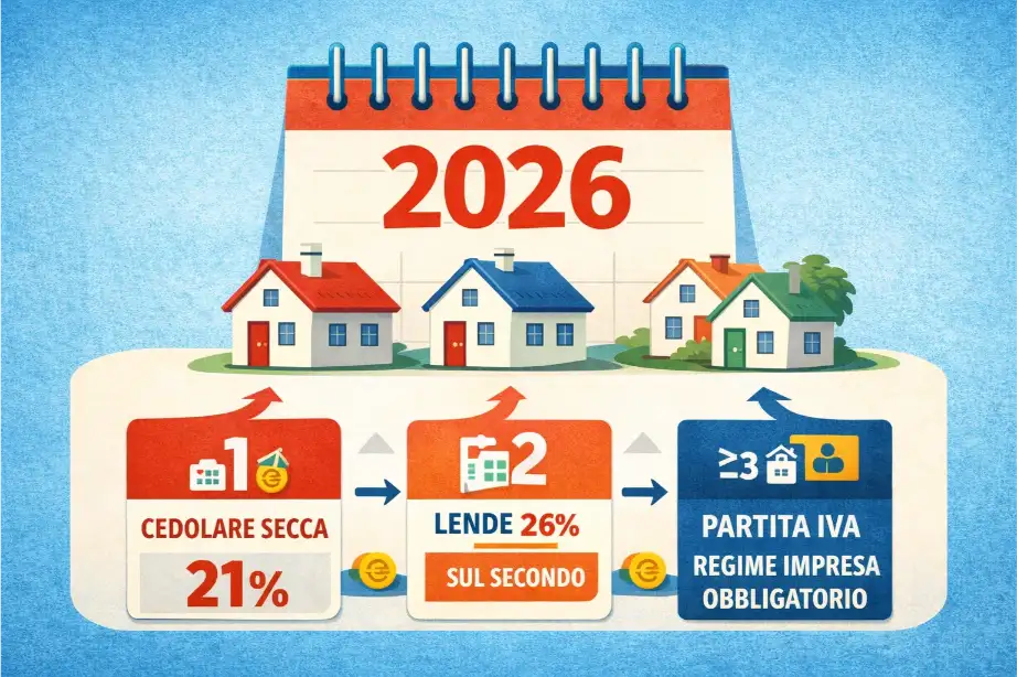 Dal 2026, invece, la cedolare secca al 21% si applica solo al primo immobile, mentre il 26% riguarda esclusivamente il secondo. Chi possiede più di due immobili destinati agli affitti brevi è obbligato ad aprire la partita IVA, poiché l’attività viene considerata di natura imprenditoriale.