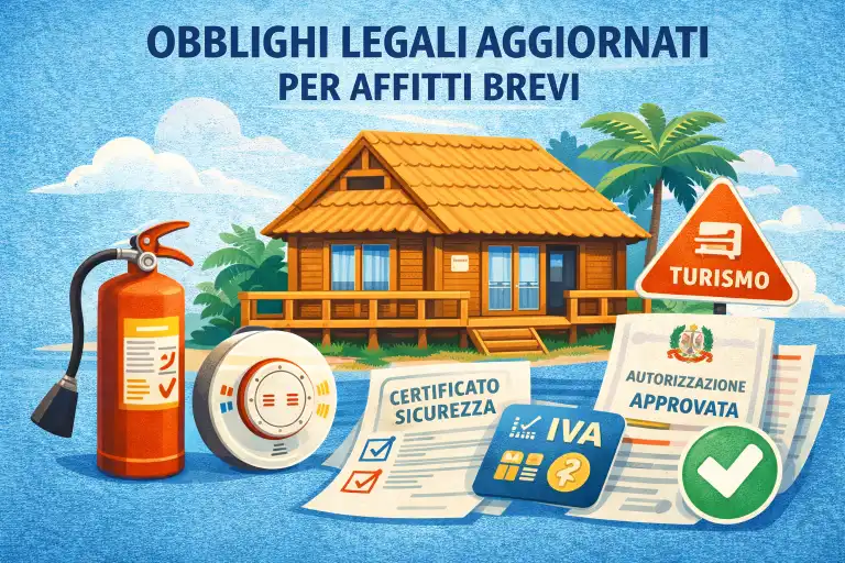 La normativa 2026 impone standard di sicurezza più alti rispetto al passato. Ogni struttura deve essere dotata di rilevatori di fumo, estintore a norma posizionato in zona accessibile e segnaletica di emergenza visibile.