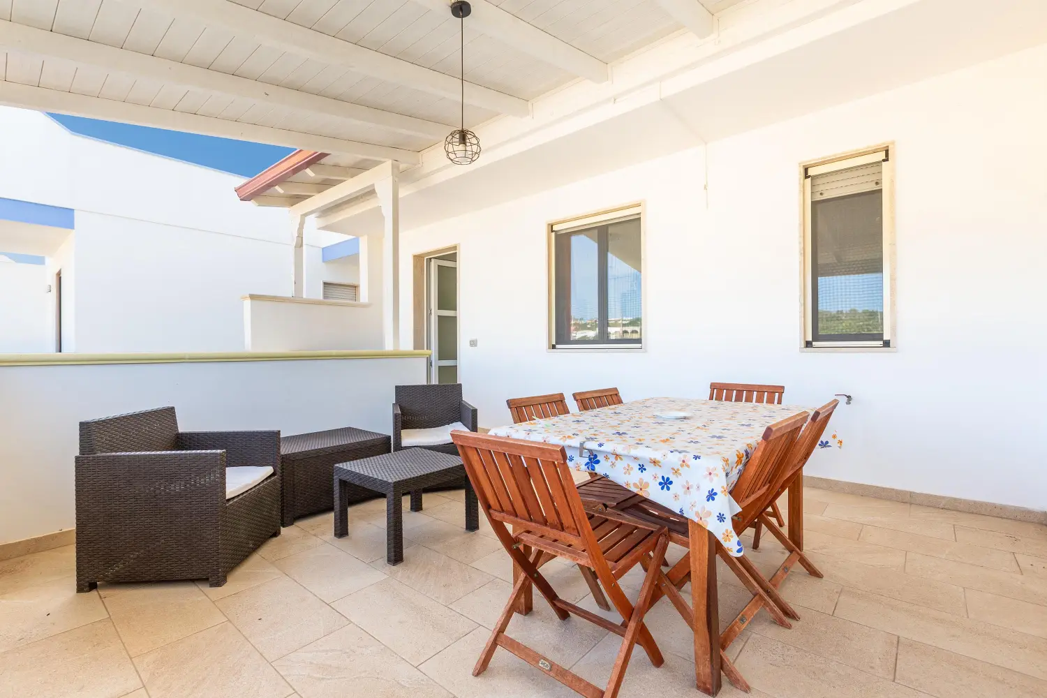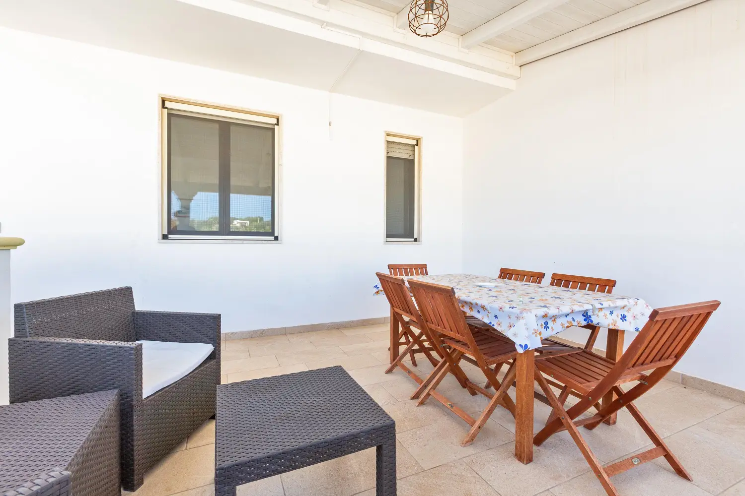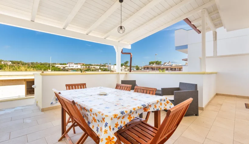 The bathroom is fully equipped with all necessities, while the private terrace, tastefully furnished, allows you to have lunch or dinner outdoors, enjoying the sea breeze and the relaxing atmosphere of Torre Pali.