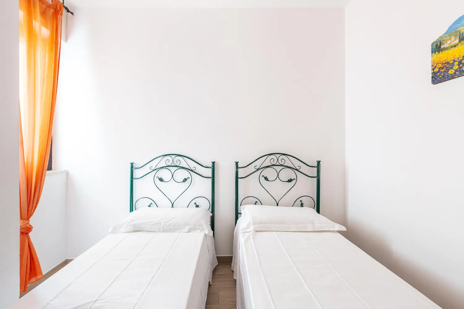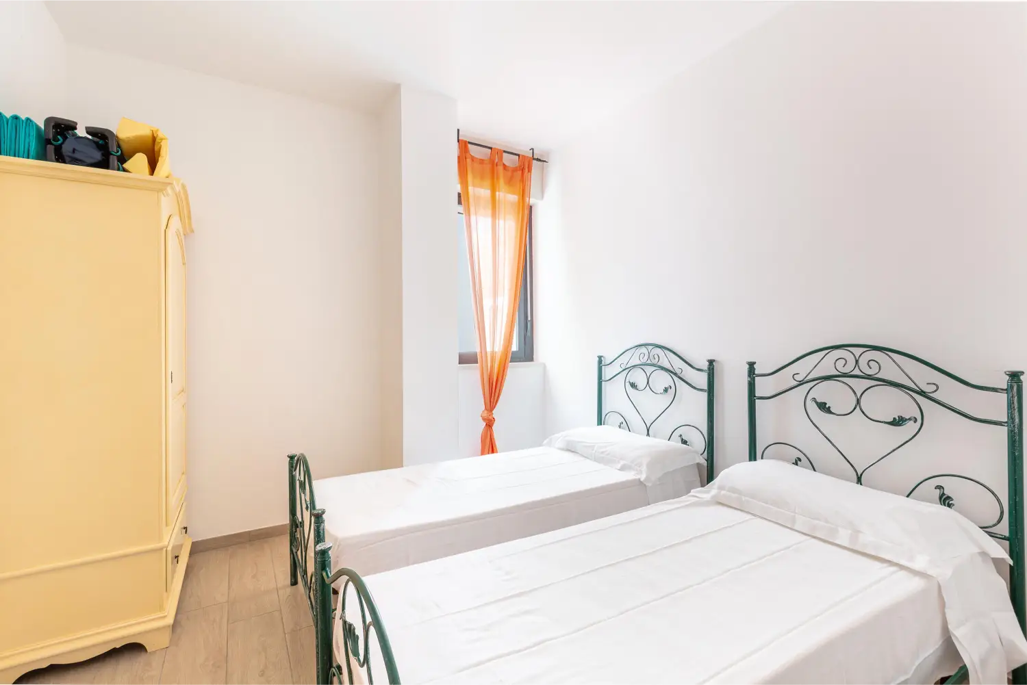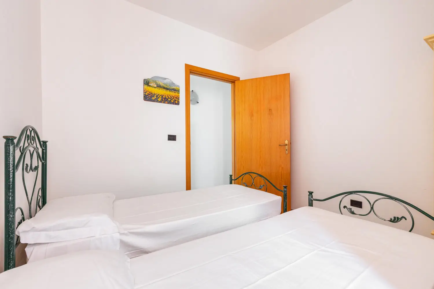 The apartment offers a bright double bedroom and a second bedroom with two single beds, both equipped with large wardrobes and furnishings designed to ensure maximum comfort.