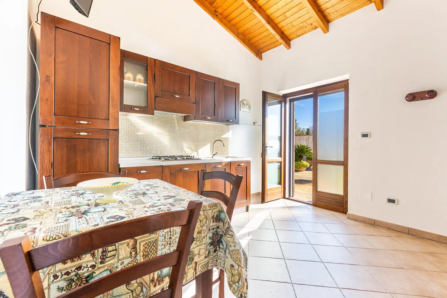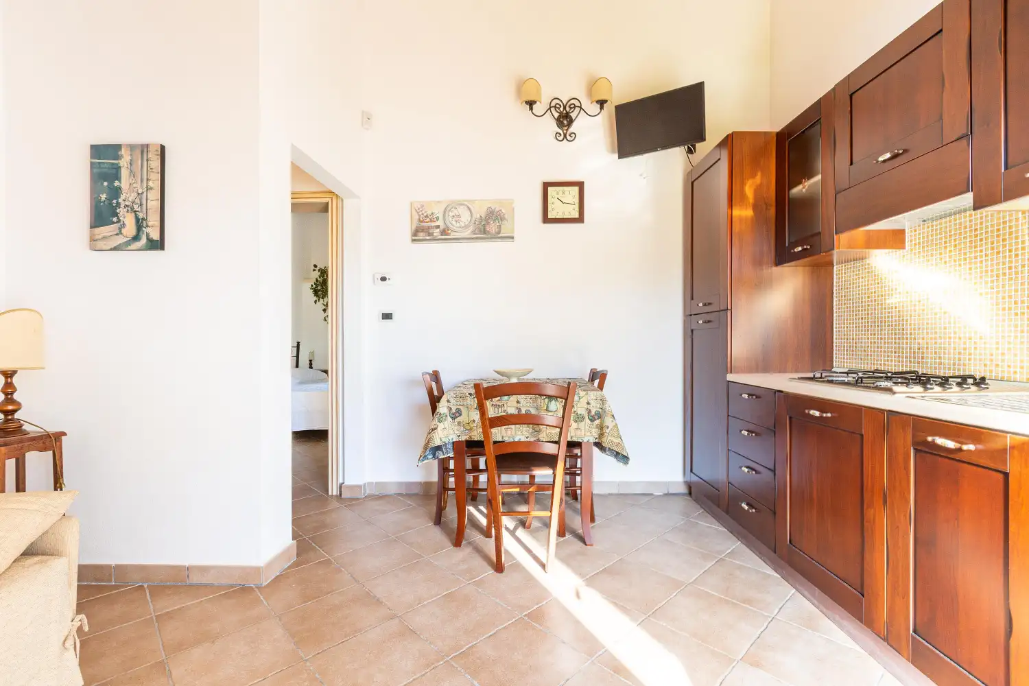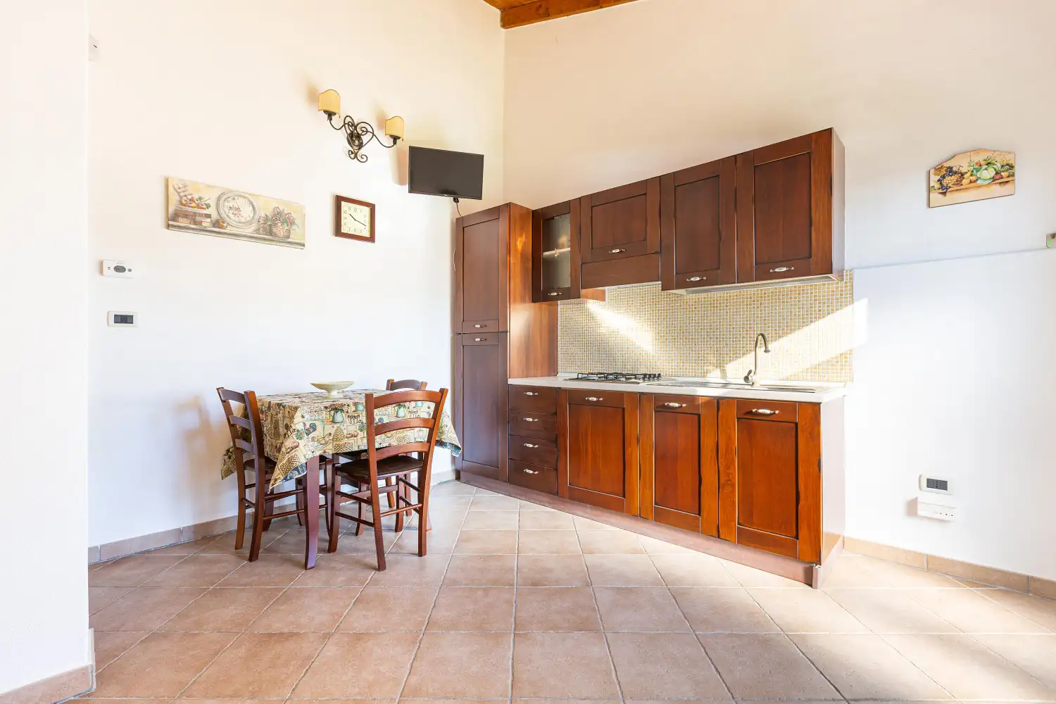 – The second apartment features a fully equipped kitchen with a dining table, a double bedroom, and a bathroom.