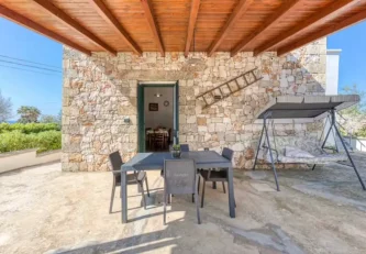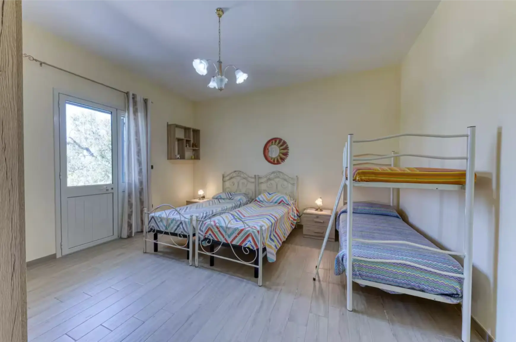 La maison dispose d’une cuisine habitable entièrement équipée avec table à manger, idéale pour partager de agréables moments conviviaux, ainsi que d’un grand salon pensé pour la détente. La zone nuit comprend deux chambres spacieuses : une élégante chambre double et une seconde chambre polyvalente équipée d’un lit double et d’un lit superposé supplémentaire, solution idéale pour les familles ou les petits groupes.