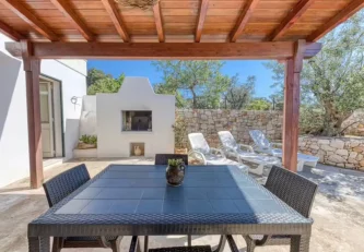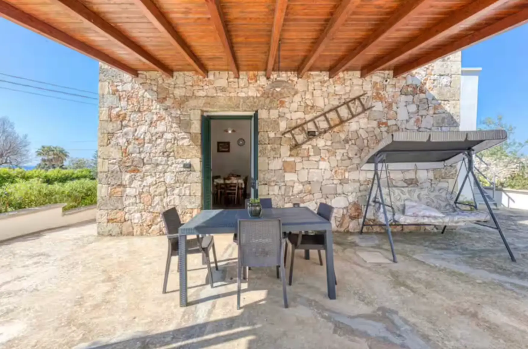 Le véritable point fort de la propriété est la terrasse panoramique avec vue sur la mer, un espace évocateur où l’on peut se laisser envelopper par la brise méditerranéenne et admirer les couleurs du coucher de soleil. On y trouve également une douche extérieure pratique, parfaite au retour de la plage. Les espaces extérieurs aménagés permettent de vivre pleinement l’atmosphère authentique du sud de l’Italie, offrant la possibilité d’organiser des déjeuners et des dîners en plein air en toute tranquillité.