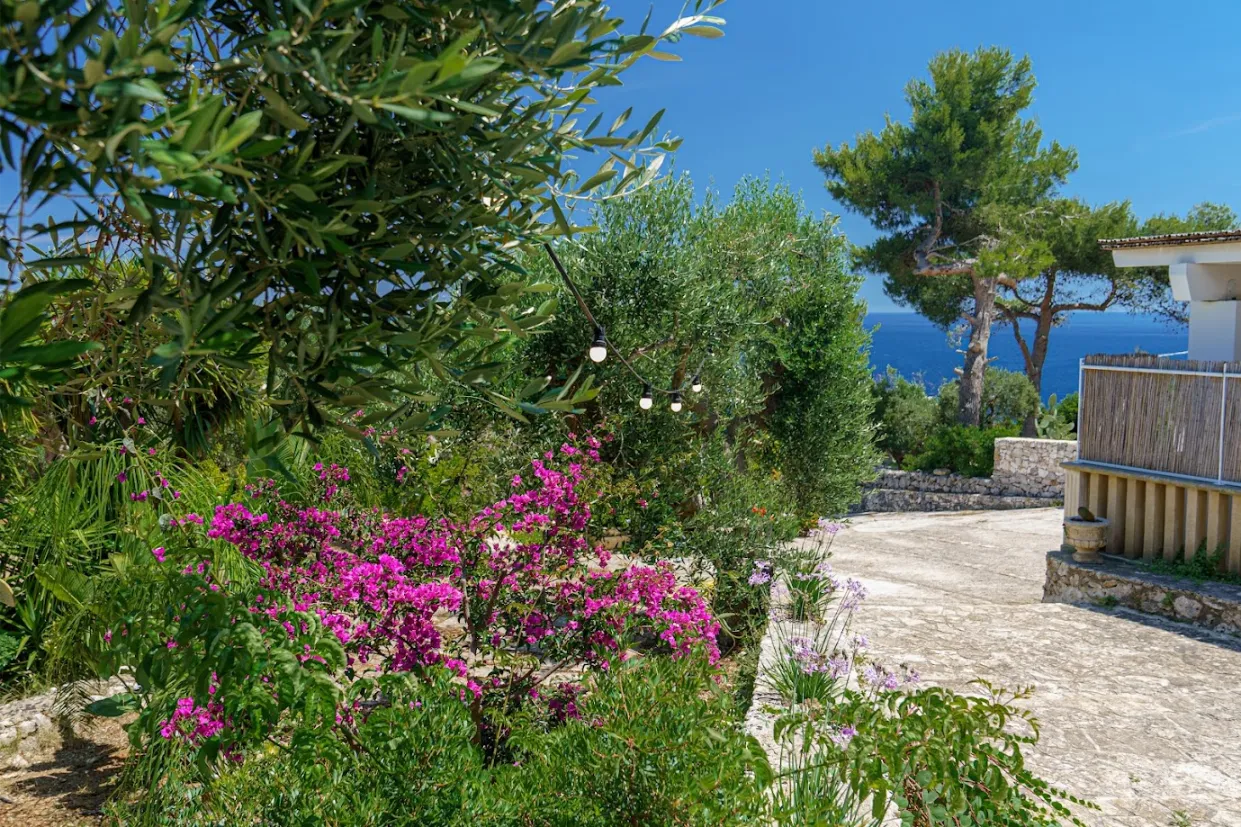 La villa è una splendida residenza con vista sul mare e sul giardino, perfetta per chi cerca relax, comfort e privacy nel cuore del Salento. Circondata dal verde e completamente indipendente, garantisce tranquillità e riservatezza per un soggiorno senza pensieri. La proprietà dispone di un ampio giardino, terrazza attrezzata e area barbecue, ideali per trascorrere momenti all’aperto in totale libertà.