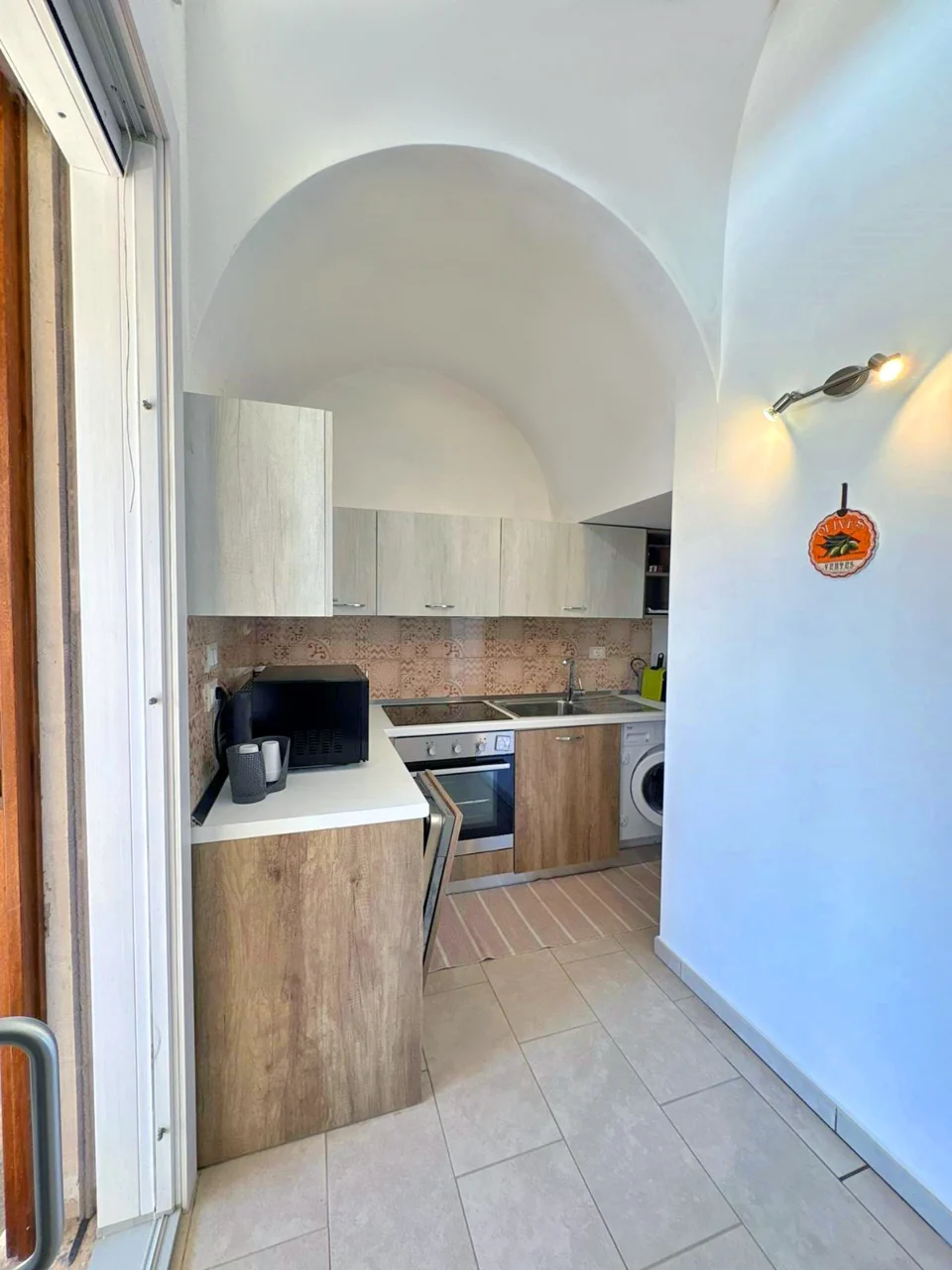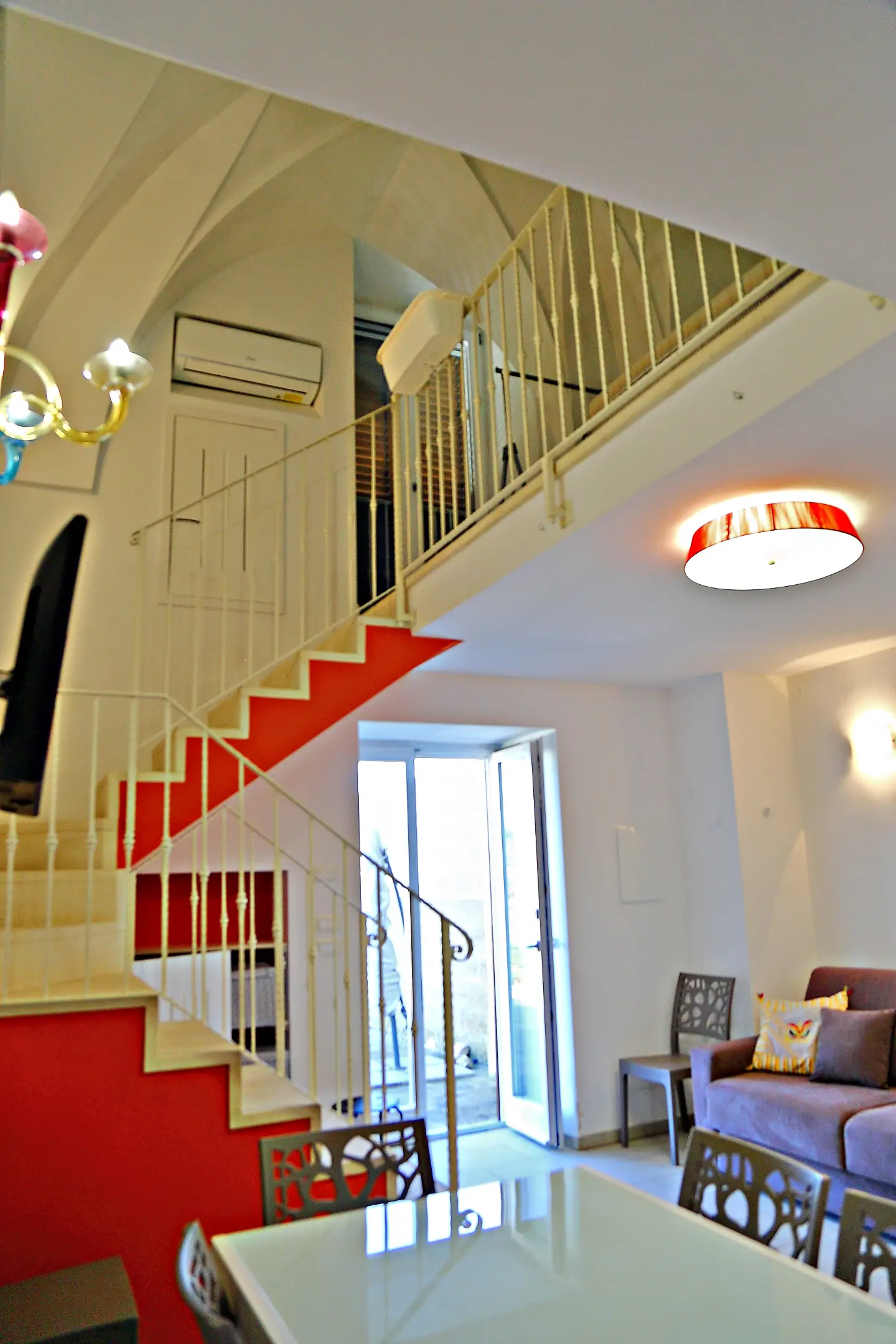 Gli interni, distribuiti su 80 mq e due livelli, combinano il fascino dell’architettura tradizionale con dettagli curati e comfort moderni.